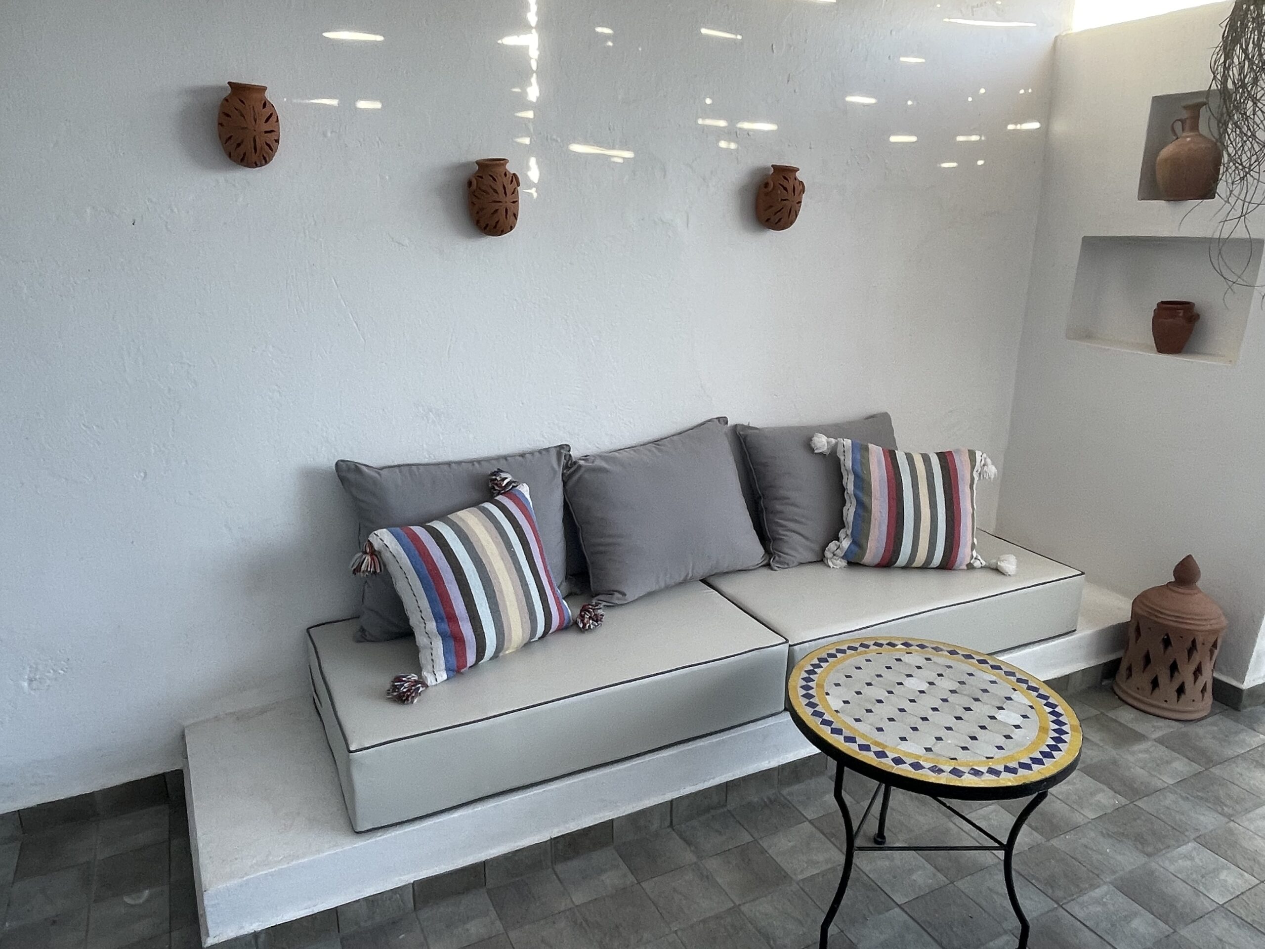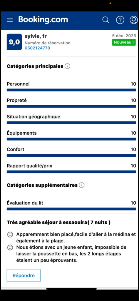 Nous avons séjourné avec ma fille a Essaouira en ce début juillet 2024, et vraiment ce fut un plaisir et un lieu de repos. D’abord, l’accueil avec Hayette, qui nous attendait à l’appartement, pour nous le présenter et expliquer les informations utiles, et se connecter au Wifi (fibre d’ailleurs)!